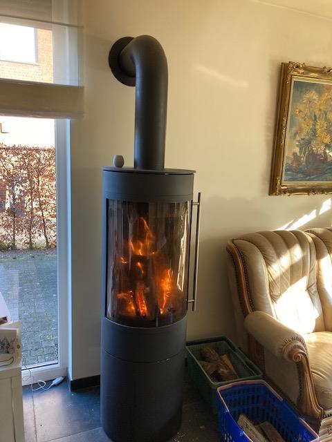 Chaudière à bois bûches en bon état. Acier noir.