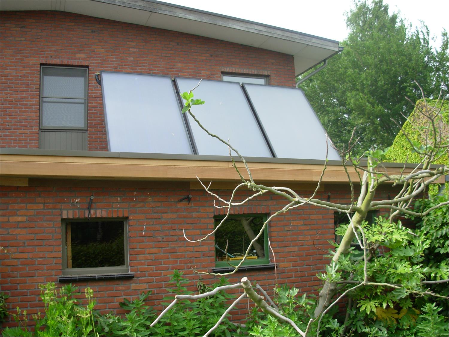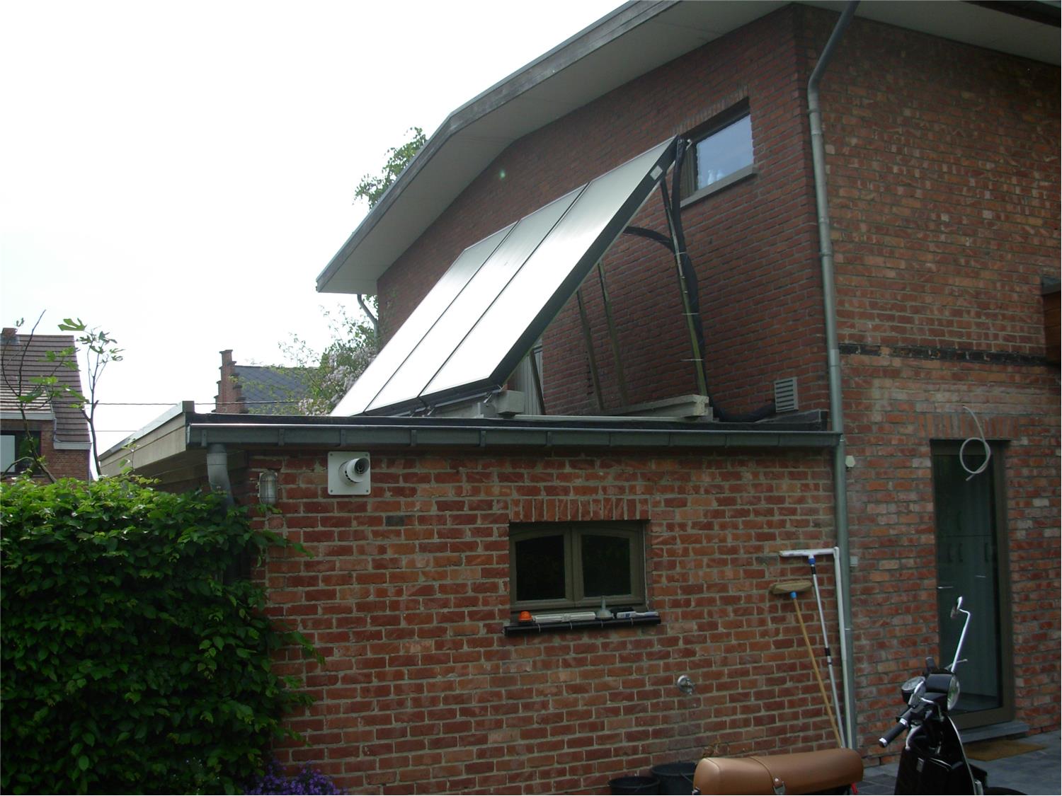 On peut installer les panneaux solaires ainsi sur un toit plat que sur un toit incliné. Aussi l'installation dans le jardin ou contre la façade est possible. Le collecteur de soleil contient une liquide qui est chauffée par la radiation du soleil. La liquide donne sa chaleur à l'eau froide du robinet dans le ballon. En été le ballon solaire chauffe assez de l’eau jusque température comfortable. En hiver il est nécessaire que l'installation de chauffage habituelle aide.